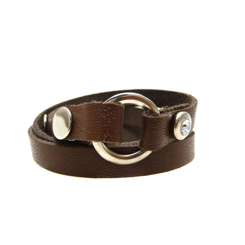 Pulseira de 3 voltas em couro marrom de 3 cm de espessura e fivela cromada